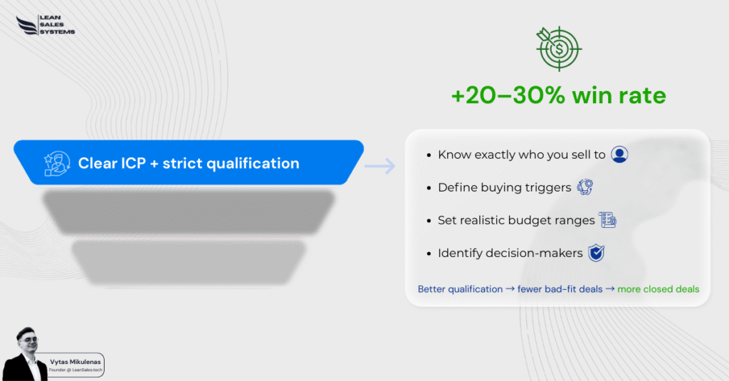 Many B2B companies see 20–30% higher win rates after tightening their qualification criteria.